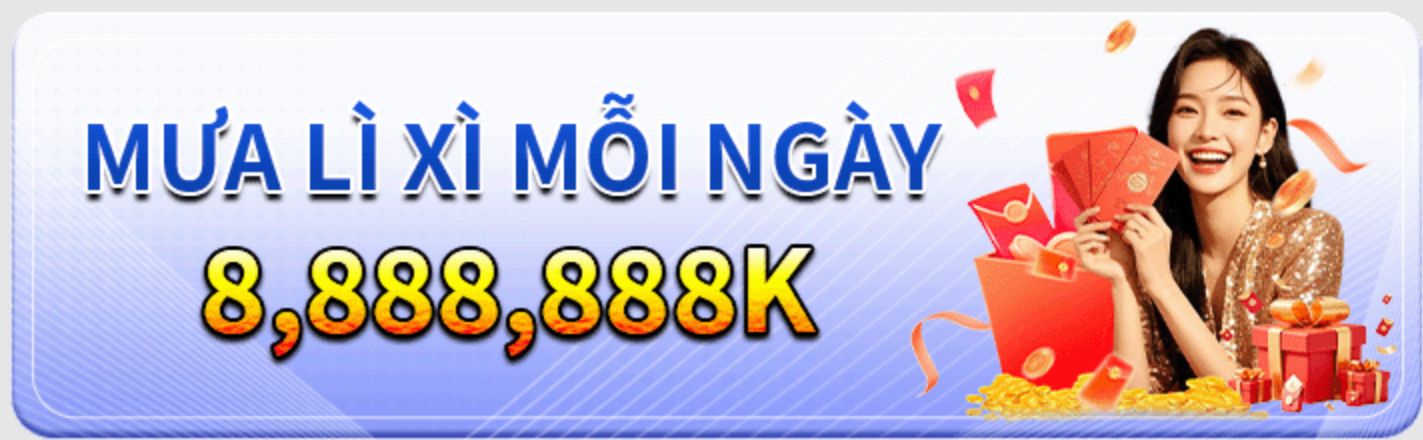 Ngày 1, 11, 21 hàng tháng Nhà cái 88tgames phát thưởng ngẫu nhiên lì xì cho Thành viên. Tổng giải thưởng lên đến 8.888.888K. Giải đặc biệt 88.888.888 VND